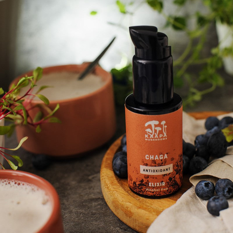 KÄÄPÄ Chaga the ultimate Elixir is carefully crafted with a unique blend of organic mushrooms, Finnish berries, and essential vitamins. Designed to support your wellness journey, this elixir offers the best of nature’s potent ingredients. Perfect for those looking to embrace the benefits of functional mushrooms in a convenient, flavorful, and highly absorbable form.